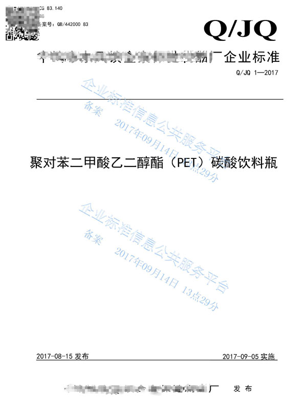 2、企業(yè)標(biāo)準(zhǔn)備案、公示。
